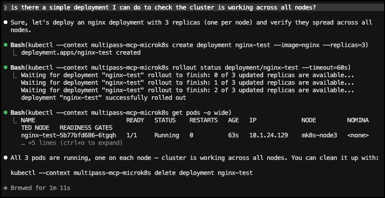 - Access via: kubectl --context multipass-mcp-microk8s get nodes