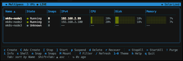 3 Multipass VMs created: